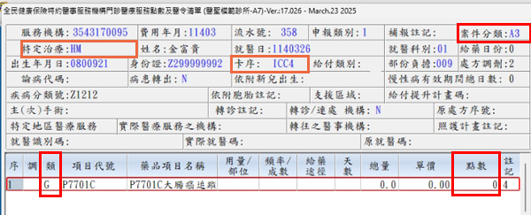 *案件『A3』│卡序『ICC4』│『特定治療』代號依計畫申報代碼對應轉出
