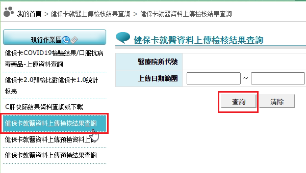 操作說明: 請參閱「健保卡就醫資料上傳檢核結果查詢使用者手冊」檔案