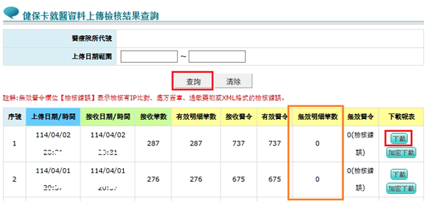 無效明細為「0」時,表示健保署接收院所上傳筆數全數正確入檔!