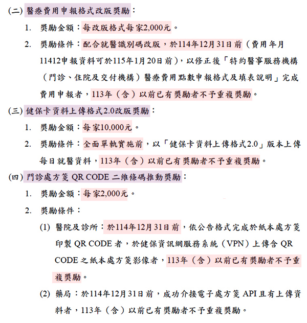 公告修正「全民健康保險鼓勵醫事服務機構即時查詢病患就醫資訊方案」,自114年1月1日起實施【調整獎勵項目】