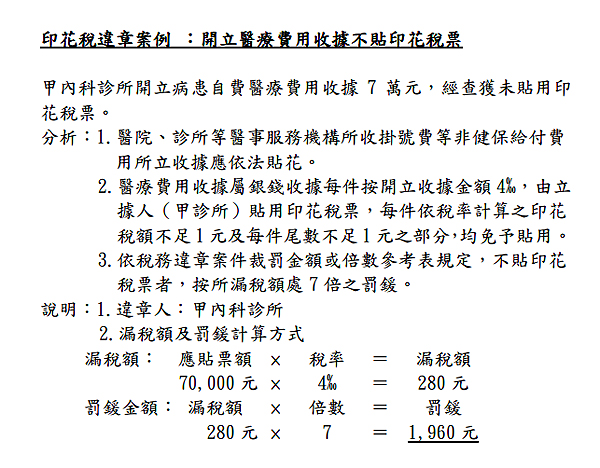 印花稅違章案例:開立醫療費用收據不貼印花稅票