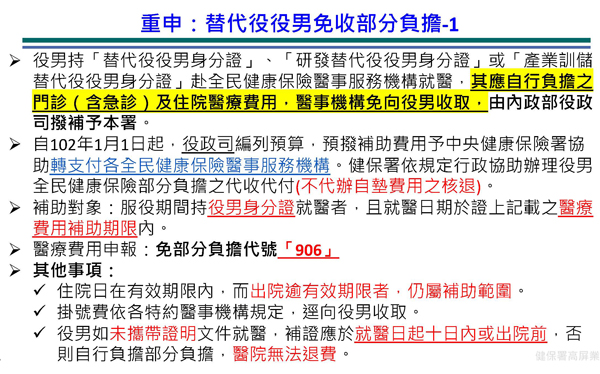 替代役役男健保免部分負擔代碼906掛號如何操作