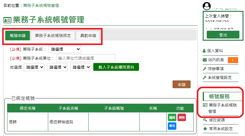 *帳號簽入-若無出現以下系統,需先進行登入帳號綁定,若無帳號,需先進行申請作業!
