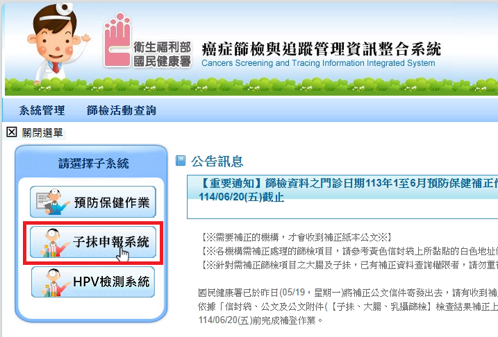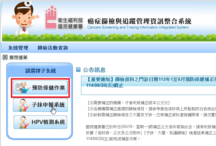 如何查詢下載大腸癌/子抹篩檢資料檢查結果需補正名單
