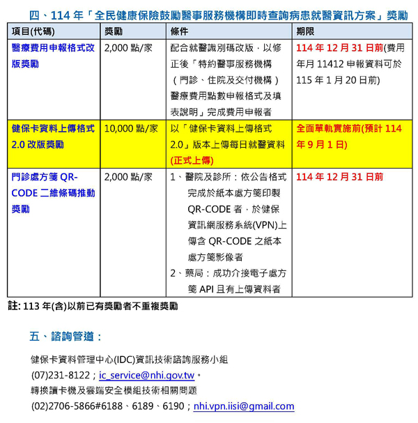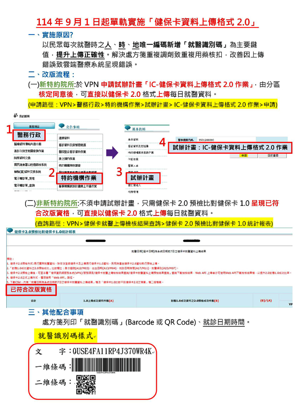 函知「健保卡資料上傳格式2.0作業」預計114年9月1日實施單軌