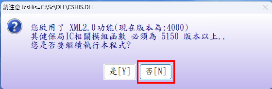 若按「是」,會出現*讀卡控制版本4000(讀卡機控制軟體出現異常,無法取得就醫識別碼)