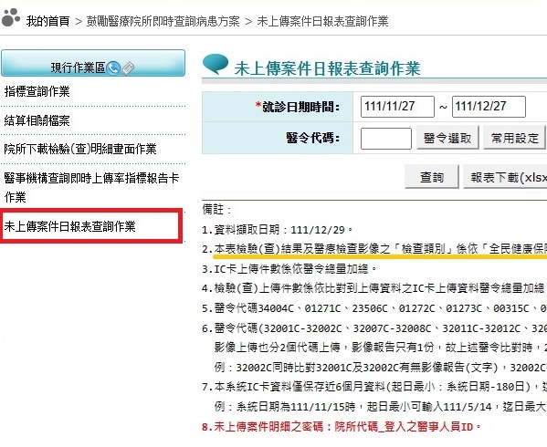 針對特定檢驗(查)醫令未上傳檢驗(查)結果明細報表如何查詢