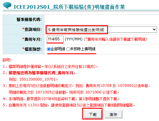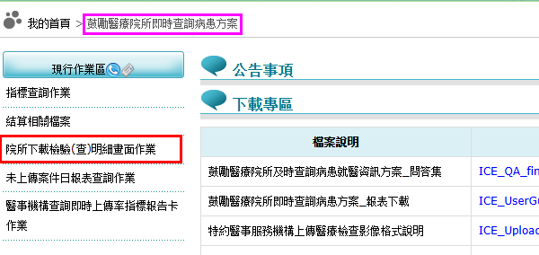 步驟三、點選「院所下載檢驗(查)明細畫面作業」