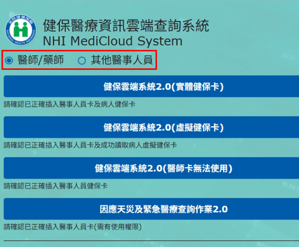可使用健保醫療資訊雲端查詢系統2.0之醫事人員職類