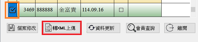 3. 勾選完成建檔資料,再點選「轉XML上傳」完成檔案輸出,再登入VPN網站進行批次資料上傳作業!