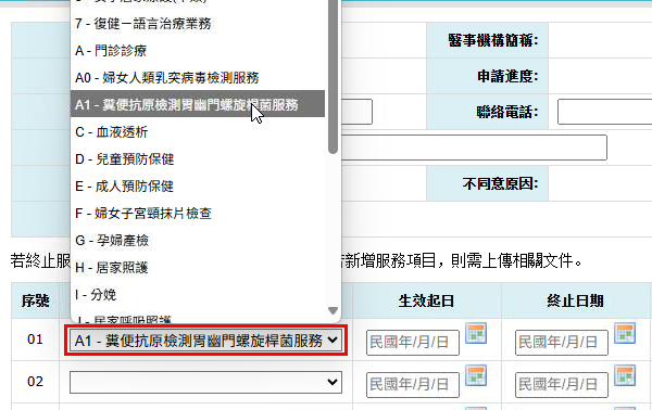 步驟三、點選欲申請服務項目『A1-糞便抗原檢測胃幽門螺旋桿菌服務』後