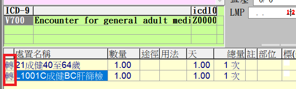 -醫令時程代碼前方填『轉』:表示該項檢體送檢,醫令費用由診所申報,需填報委代檢機構代碼