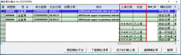 檢查提示:轉診(轉出)醫令01036C=>若您是稍後才要上傳,可忽略此訊息...