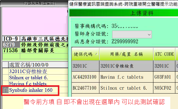 A:可將系統送出列表項目醫令依序改自,再進入跨院重複查詢畫面,若無不符醫令即可傳回正確結果。
