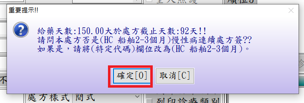 批價作業畫面:出現以下提醒視窗,按下『確定 』