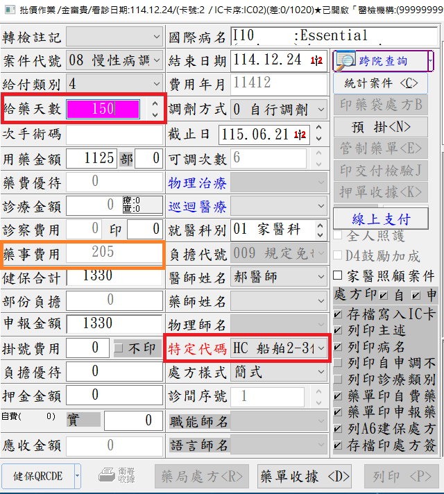 批價作業畫面:《基層診所無加收藥品部分負擔》