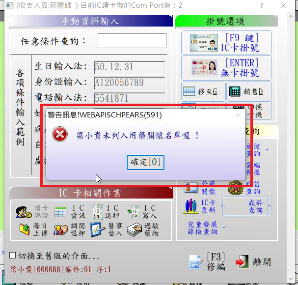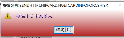 執行查詢作業時需同時置入個案健保卡及醫事人員卡!若不符合要求時會跳出訊息