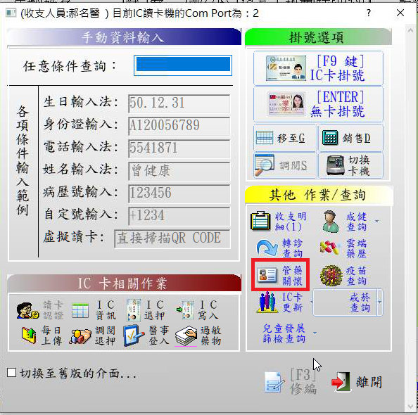 未置入健保IC卡,可使用掛號清單列表對象點選『管藥關懷』查詢
