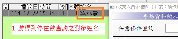 — F3診療作業/批價作業畫面 執行查詢功能說明