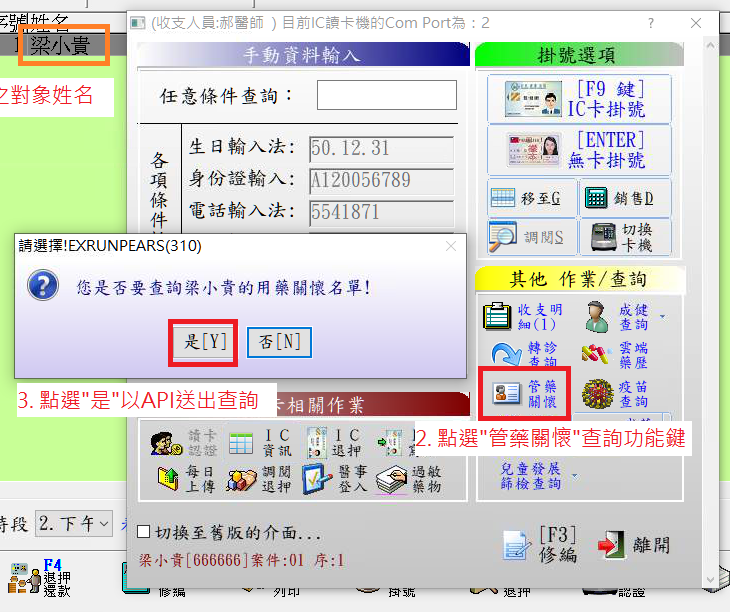 *若為關懷名單對象,需置入健保IC卡,再點選『管藥關懷』查詢