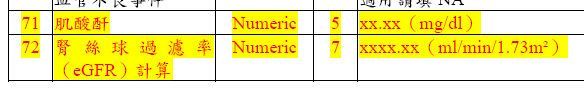 115年腎絲球過濾率採CKD-EPI公式計算,另肌酸酐改變填報長度,原序號38、39保留欄位(請填0)
