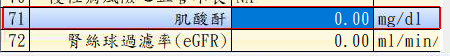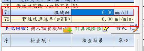 第一階段檢查日期不管115年以前或以後, 肌酸酐、腎絲球過濾率皆抓序號71、72
