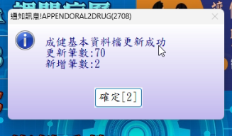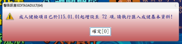 *系統會自動新增71.72項目欄位,按下『確定』後,再退出醫聖診療系統重新進入即可!