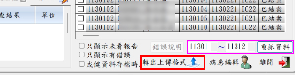 Q:醫聖診療系統成健報告批次上傳檔如何一次轉出需補正區間日期