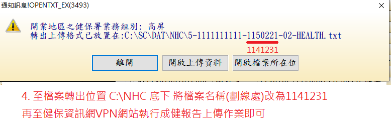轉出成健報告檔置放於本機C磁碟機內的NHC資料夾底下
