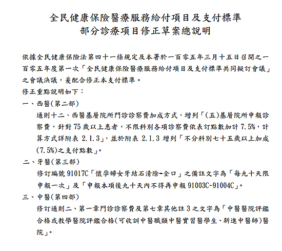 預告修正「全民健康保險醫療服務給付項目及支付標準」部分診療項目草案